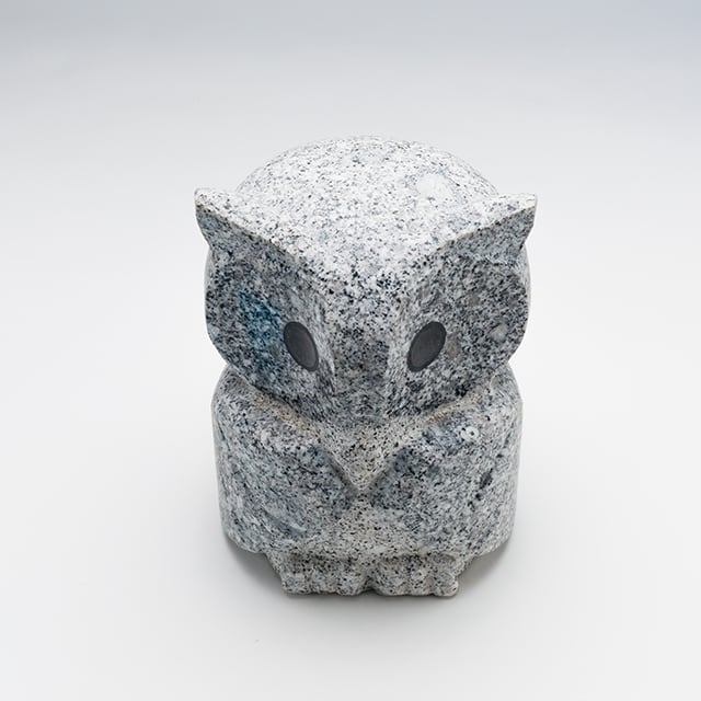 フクロウを縁起ものとして集めていらっしゃる方は多いですが、石のフクロウの置物ができました。森の賢者、目先の利く鳥として知られるフクロウは、学業成就や商売繁盛にご利益があるといわれます。 また「不苦労」や「福来朗」ともいわれ、360度首が回ることから、開運・招福、お金や苦労に困らない、縁起の良い鳥といわれております。