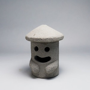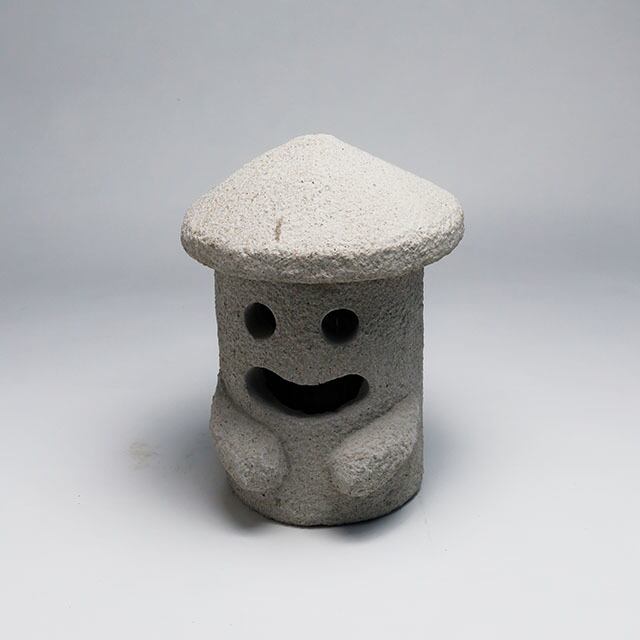 [いしおさんランタン]…まさに、いしおさんそのもの!本物の石でできたいしおさんは、どっしりとした仕上がり。頭の部分(三角の傘部分)がふたになっていて、取り外し可。中にキャンドルやLEDランプを仕込めば、やさしく光って癒してくれるいしおさんが楽しめます。
