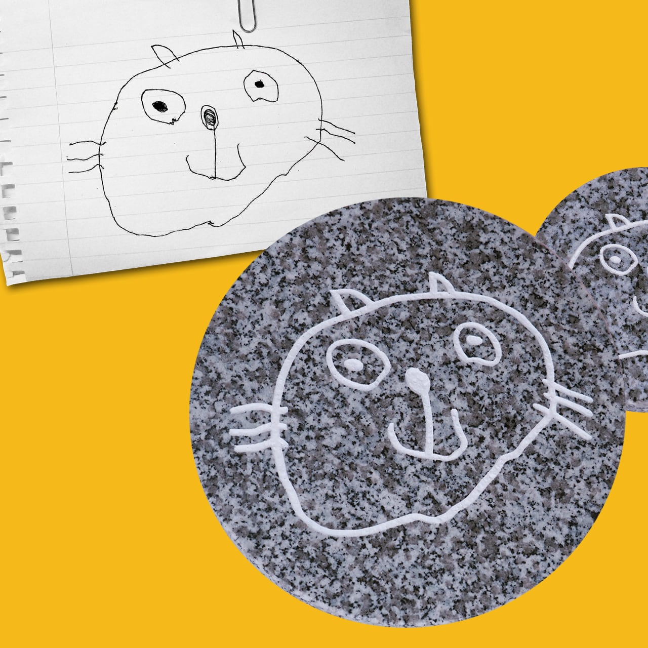 子供が描いたラクガキ…? いや、天才画家が描いた作品を、石に刻んで遺せるのが「わが家のピカソ」です。